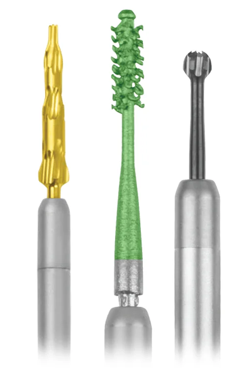 Provides instruments to meet bone removal, tissue cutting, and pilot hole drilling needs. DuraPro™ is one system that may be used to support a lumbar interbody fusion procedure.